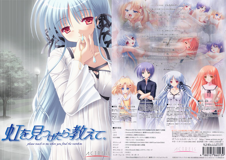 主人公、白辺颯斗(しらべはやと)は外科医志望の医学生。雨の降りしきる中、颯斗はスイという純粋無垢な少女と出逢う。それはスイという名の少女──透明感のある純真なスイを中心に、虹の架かる橋を探し求めるかのように集う5人の仲間達。幼さと透明感を合わせ持つ、謎めいた少女『スイ』颯斗に一途な想いを膨らませていく内科医志望の『雨宮晴香』(あまみやはるか)決して寂しさを見せようとはしない、妹のように明るい『新海悠紀』(しんかいゆうき)セラピストとして『癒し』を探求する大人の女性『境音海』(さかいおとみ)5人は偶然の中で生まれた交友関係の元、様々な問題に直面していく。それは時として切なく、残酷な運命…、そして、心と心の織り成すふれあい…。5色の色は混ざり合い、いつしか雨雲を割く虹のように輝けるのだろうか…。きっと貴方は許し合える優しさを持てるようになる。ココロとココロが虹(こ)を描くように…。 もっとみる